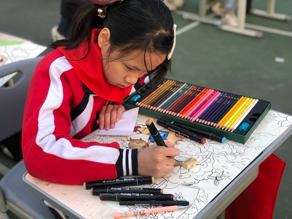 同学们在绘画中表达了对祖国的美好祝愿,对抗疫英雄的敬仰之情。通过此次现场绘画活动,营造了良好的校园文化环境,展现学生的自我表现能力、审美能力和创造能力,丰富了同学们的课余生活,给了同学们一个展示自我的舞台。