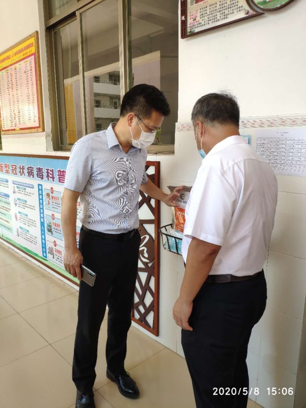 为确保第二批学生返校工作顺利开展,保障广大师生的健康安全,5月8日下午,南头镇镇长蓝海斌、镇纪委书记余漾、党委委员薛焯明及副镇长肖彦余率检查验收组一行对南头镇初级中学第二批学生返校准备工作进行检查验收,并给予指导。
