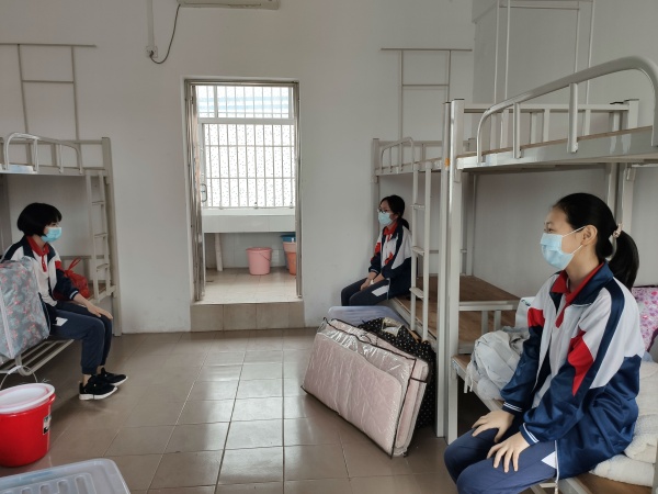 第一批次完成后,马上组织第二批次的住宿生测量体温,进入校门,直达宿舍放行李后,在自己的床铺上等候广播通知,错峰下楼,保持间隔一米以上,由老师带队到检测点检测。检测完成后,要求学生联系在校门外等候的家长,立即离开学校。