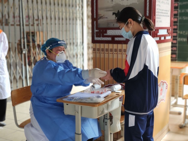 本次核酸检测委托第三方检测机构完成,需要检测的学生共有一千多人,分三个批次进行,分别是走读生、住宿生,外镇就读毕业生。