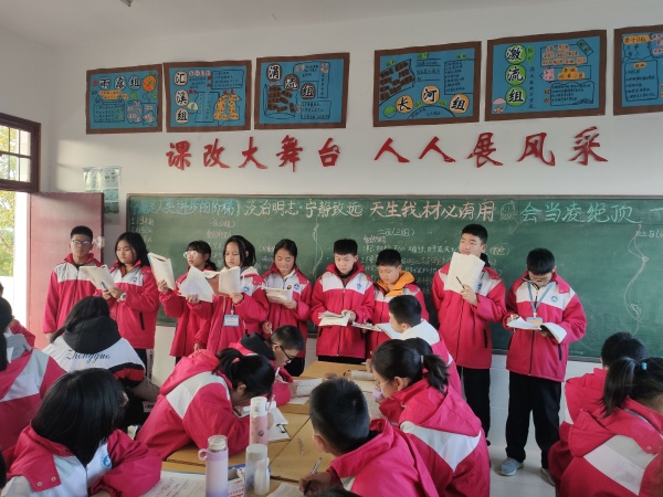 在观摩课堂的环节中,老师们自由选择班级进行听课,再次深入了解“五环渐进式”课堂模式,特别关注各学科在模式的"五环"如何一步一步地渐进的。看,第一环的练习回顾通常以上板方式开展,学生离开座位到教室内外的黑板进行练习和听写,完成后科代表对反馈情况进行评价,第二环是小组讨论,小组成员围绕学习任务进行互学互助,学生们讨论气氛热烈。第三环是展示提升,需要展示的学生们能大声自信地展现小组的学习成果,同学们的补充质疑产生互动,互动展现生成,这是最精彩的一环;接下来是浏览巩固和达标检测,在这环节中教师可根据学生学习情况进行干预,给予学生学习情况进行点评,同时提供一些与本节课知识点相关的检测,要求人人对所学的知识点掌握过关。“五环渐进式”课堂模式充分体现"学生是课堂的主体,教师是课堂的主导"的理念。