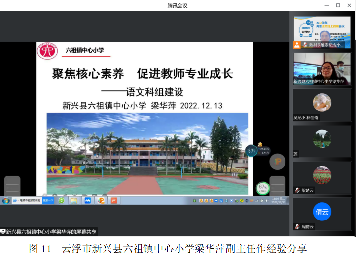 首先由吴维泰纪念小学利艳芬副主任代表吴维泰纪念小学语文科组作《课题引领,分格培训,助力教师专业成长》科组建设经验分享,随后并作《核心素养视域下跨学科融合的实践:小学古诗信息化教学》课题专题发言。接着由新兴县六祖中心小学梁华萍副主任作语文科组建设经验分享,并作《聚焦核心素养,促进教师专业成长》专题发言。