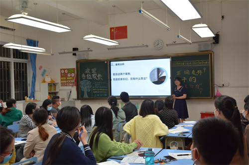 本次活动首先由低年级级长肖清娴进行主题发言,她结合自己的德育实践和管理经验,从主题班会课的定义、班会主题的确立、班会课的策划以及深化巩固成果等方面进行了阐述:选题切入点要小,从急切需要解决的问题出发;借助班会课专属的评价机制提高班会课的有效性……给班主任们带来新的启发。