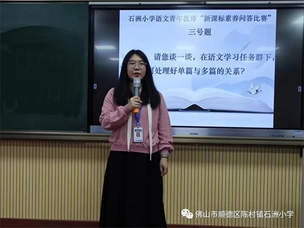 一次历练,一次成长。练洁珍老师带来一节有序、有趣、有智的《小猪变形记》绘本阅读读后分享课,让同学们在想象的世界里爱上阅读,享受阅读的快乐。在“青年教师新课标素养问答”比赛中,选手们落落大方,各有巧思,在极短的时间内结合教学经验陈述自己对新课标的理解,展现了自身丰富的知识储备和超强的临场应变能力,为提升青年教师专业素养起到积极促进作用。