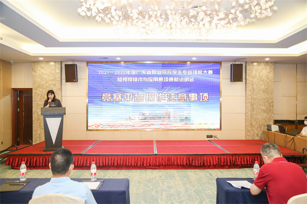 应疫情防控要求,5月7日晚上7点,本次大赛赛前说明会在参赛队伍入住的酒店举行。省大赛办督察员覃忠健、广东技术师范大学信息中心原副主任王伟杰、顺德区陈登职业技术学校教务处主任陈要求、陈村职校校长林家祥、副校长李毅、教务处主任周忠红、教务处副主任杜文林、北京中广智远科技发展有限公司技术员兰婷婷女士等出席赛前说明会。