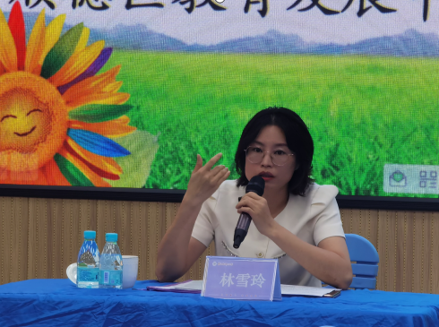 活动的第四个议程,由顺德区教育发展中心教研员林雪玲老师进行《新课程标准下的学习任务群的设计与实施》专题讲座。林老师首先大力点赞了龙江镇区域联合教研共同体的教研模式,并对三所学校提出希望,共同体各校应该拧成一股绳,加强资源互通,共同协作。