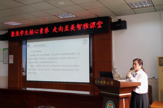 黎爱叶主任以《单元整合教学新视角,学科核心素养新探索》为题浅谈了学校英语科组建设的思路和做法