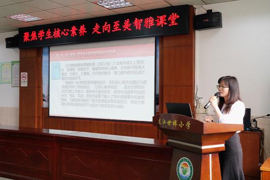 随后,龙江镇教育教学研究室义务教育教研与监测组田乃林组长、罗辉英副组长和英语教研员梁宝欣以镇域的视角,分别以语文教研共同体协同、数学课堂“非线性”、英语“双新”课堂教学进行了专题的讲座。