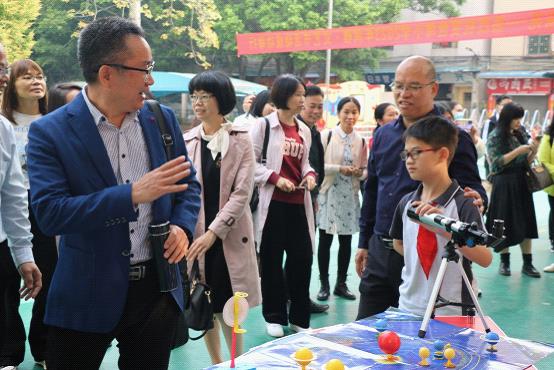 在李少强校长的带领下,领导和新兴的同行们察看了校园环境文化,观看了学校的创智·科漫节的成果展示,饶有兴致地听了学生关于小小科学家、纸桥承重、萝卜搭高塔、变废为宝、3D打印等现场解说,被孩子们的观察力、学习力、思维力、动手能力和表达能力深深吸引着。