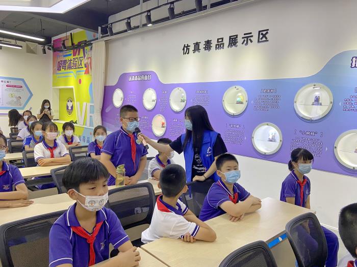 活动现场,禁毒社工通过ppt讲解,给同学们介绍了毒品的基本知识、毒品的危害以及如何预防毒品等方面的内容重点讲解了第三代新精神活性物质的种类和危害。并且通过带领同学们参观仿真毒品展示区,法制宣传教育区,宣传国家有关禁毒的法律规定。同学们在禁毒游戏体验区戴上VR眼镜体验滥药后的带来身体晕眩感,禁毒社工告诫同学们要懂得珍爱生命,远离毒品。