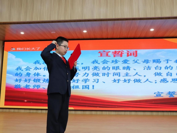 全体四年级孩子们齐唱《一起向未来》,大家在熟悉的旋律中畅想未来,放飞梦想。然后,在主持人的带领下庄严宣誓。高举的拳头代表心中的坚定,铿锵的誓言饱含对未来的决心。
