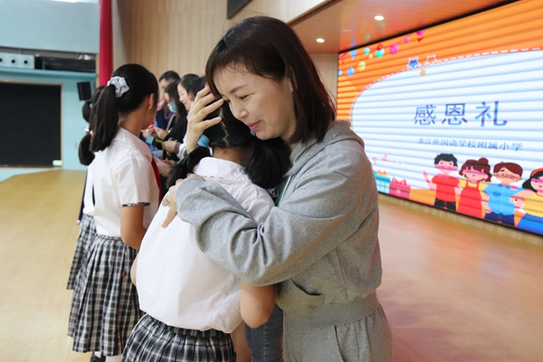 感恩并不只是言语上的表达,更有行动上的体现,你瞧!学生代表给四年级全体老师及家长代表送上自制感恩卡,家长们和老师们都收到来着孩子们沉甸甸的爱!