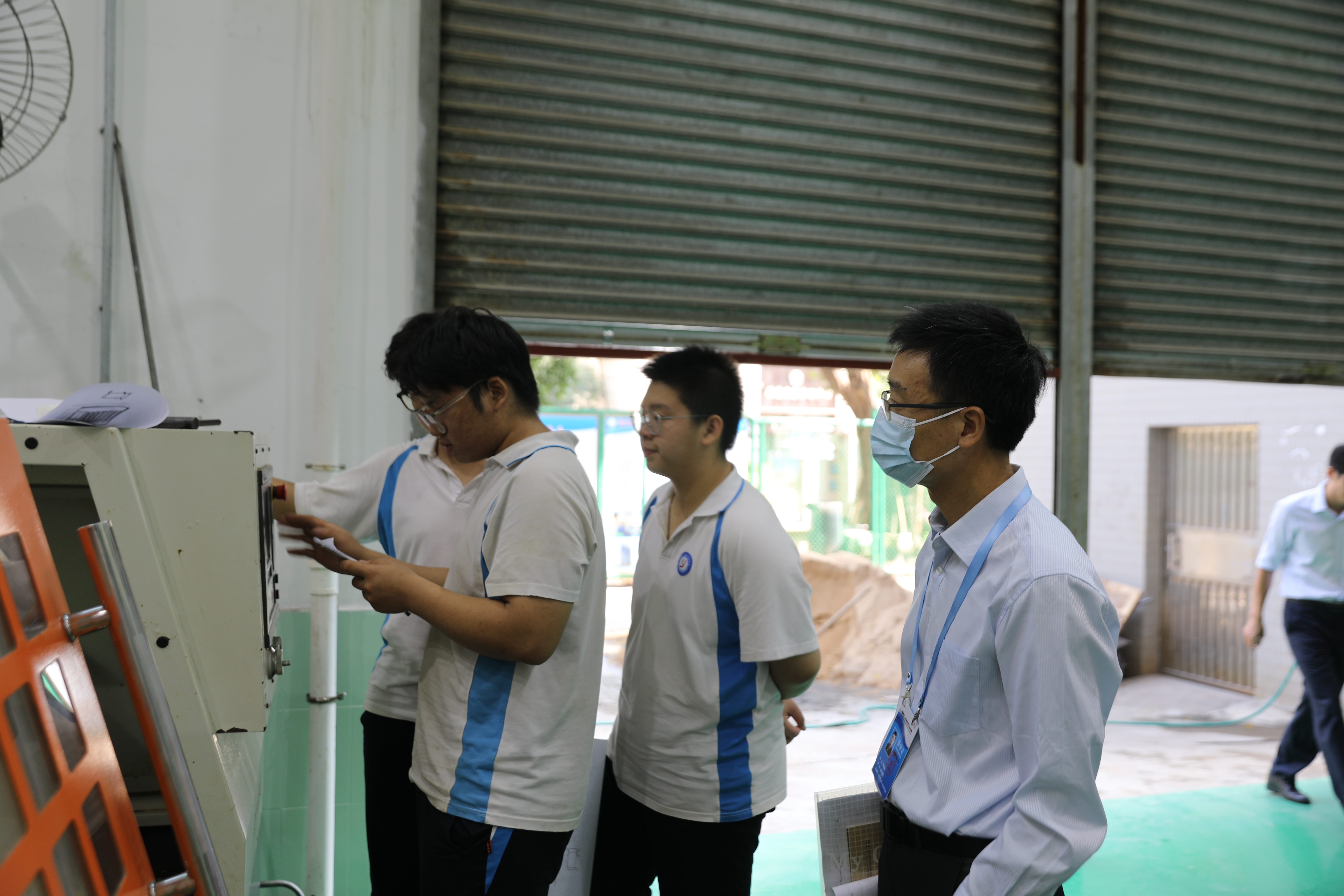 王老师指导学生操作数控车床