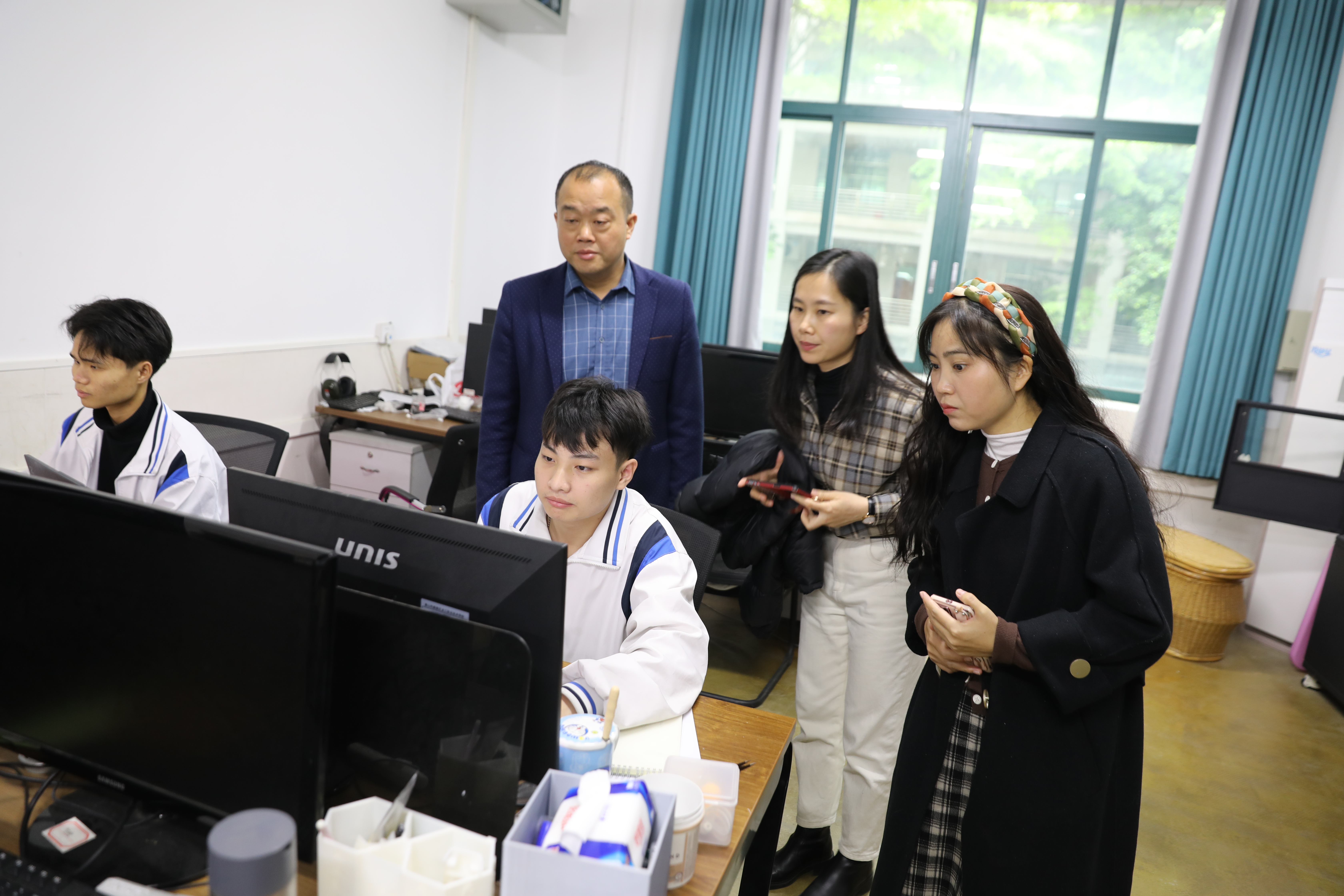 驻足观看同学们实训