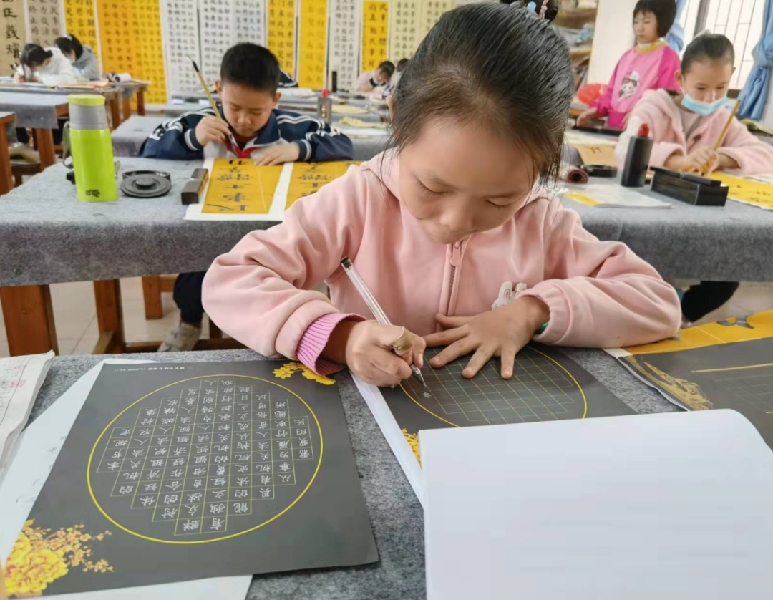 陈佳颐同学是红旗小学四年(4)班的学生,她学习成绩优秀,可绝不是“书呆子”。她是一位活泼可爱的小女孩,也是一位爱热闹、喜欢玩耍的小女生。但是,一说到书法练习,年纪小小的她可以马上收起那颗爱玩的心,认真投入练习。她勤学刻苦,挑战自我,在书法学练中取得了喜人的成果。