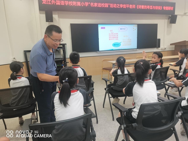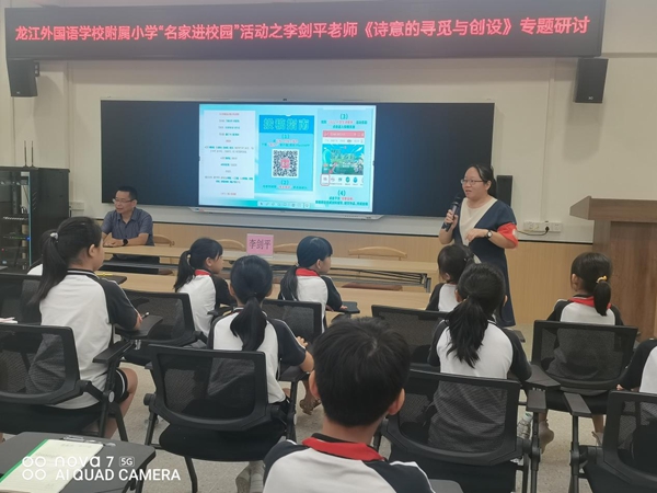 秋风送爽,丹桂飘香。为弘扬优秀传统文化,推进儿童诗歌教学,提高学生的语文素养,让师生得到全面发展。9月22日下午,龙江外国语学校附属小学举行了《诗意的寻觅与创设》专题研讨活动,学校特邀请到多年以来为诗教事业默默付出的著名佛山本土诗人——李剑平为我校师生做诗歌创作培训。全体语文教师和三至六年级的诗歌爱好者踊跃参加了本次活动。