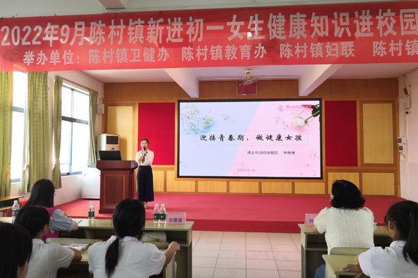 花开应有时,青春期的孩子随着生理、心理的变化,已进入朝气蓬勃又躁动不安的花季。为增强女生对青春期生理知识的了解,加强青春期心理健康教育,增强自我防范和自我保护意识,2022年9月13日下午,陈村镇初级中学组织七年级女生在三楼会议室进行了一场女生健康知识讲座。陈村镇卫健办何紫晴副主任、佛山市妇幼保健院宋珊珊、陈村镇初级中学汪立云副校长、周素芳副主任等参与此次活动。