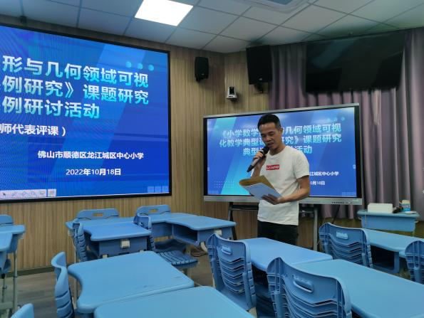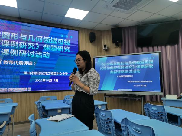 紧接着是,教师代表对本次展课的点评。本次展课借助可视化教学,教师能对学生的数学思维过程进行引导,优化学生的数学思维发展路径,提升数学思维品质。本次课堂是一次精彩的展示,值得每一位老师学习。