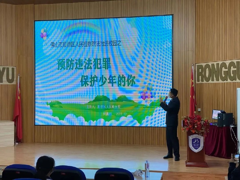 12月16日上午,我校在电教馆开展“预防违法犯罪,保护少年的你”预防校园欺凌的讲座,讲座邀请到佛山市顺德区人民检察院二级检察官何鹏辉先生主讲。