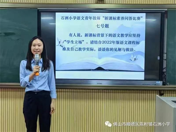 一次历练,一次成长。练洁珍老师带来一节有序、有趣、有智的《小猪变形记》绘本阅读读后分享课,让同学们在想象的世界里爱上阅读,享受阅读的快乐。在“青年教师新课标素养问答”比赛中,选手们落落大方,各有巧思,在极短的时间内结合教学经验陈述自己对新课标的理解,展现了自身丰富的知识储备和超强的临场应变能力,为提升青年教师专业素养起到积极促进作用。
