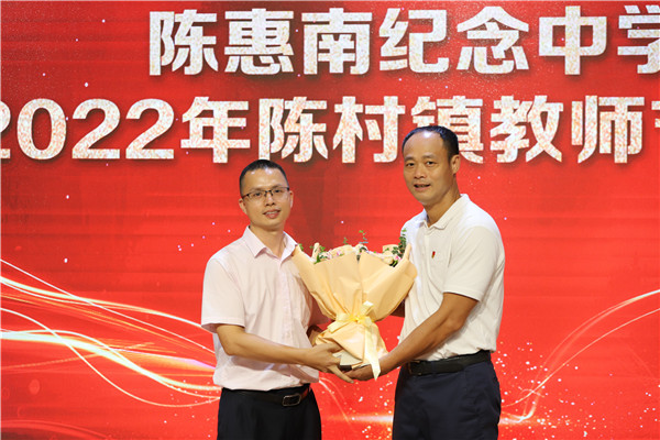 在报告厅,苏主席与教师代表亲切地交谈,并送上鲜花。苏主席在讲话中指出,陈惠南纪念中学的老师素质很高,也很辛苦,陈惠南纪念中学的办学成绩突出,得到陈村老百姓的良好口碑。他代表镇党委、镇政府对一线教师们表示衷心的感谢。