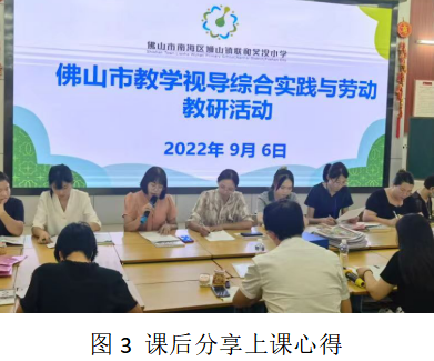 在评课环节中,佛山市综合实践教研员饶小锋老师认为本节课是标准的、优秀的劳动教育课课例,目标达成度很高,学生在劳动中收获满满,注重师生互动、评价。南海区教研员肖霞主任认为,陈燕冰老师这节课紧紧抓住了劳动课的本质,学生通过实践操作,掌握劳动技能,培养劳动品质,领悟劳动精神,让南海的师生感受到顺德劳动教育课堂的魅力。