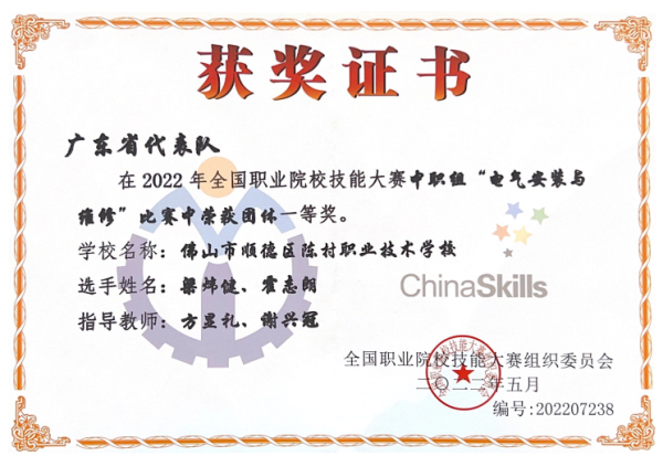这是陈村职校第二次参加“电气安装与维修”赛项的国赛,充分体现了陈村职校的专业教学水平与师资团队的实力!