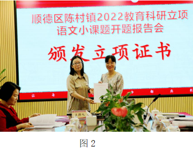 报告会上,陈村镇教研室李学英主任向四位课题主持人颁发了课题立项通知。
