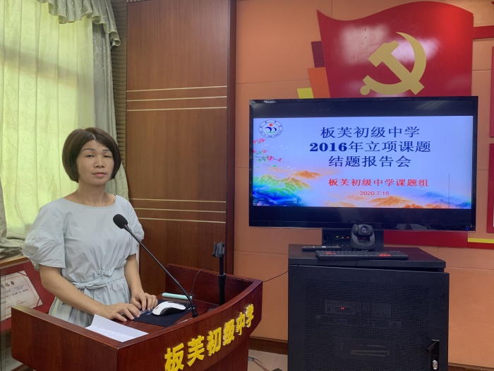 7月18日上午,板芙中学高学琳老师主持的2016年市级立项课题《师生合作开发初中英语活动课程的实践研究》在该校会议室顺利结题。出席本次结题报告会的专家有市教研室张泰刚老师、市教师发展中心李宏伟老师和板芙镇教师发展中心胡新国老师。本次报告会由该校王冰副校长主持。
