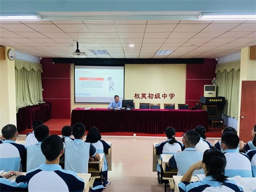 为充分发挥团组织教育青少年的功能,进一步加大对团员青年、入团积极分子的培养教育力度,实现以“党建带团建”的目标,4月11日,板芙初级中学在弘毅楼一楼阶梯室举行“党支部书记上团课”活动。该校党支部书记、校长吴勇明以《永远跟党走,建功新时代》为题讲授团课。活动由该校团委书记梁博煜老师主持,各班团员代表、入团积极分子共70多位同学参加。