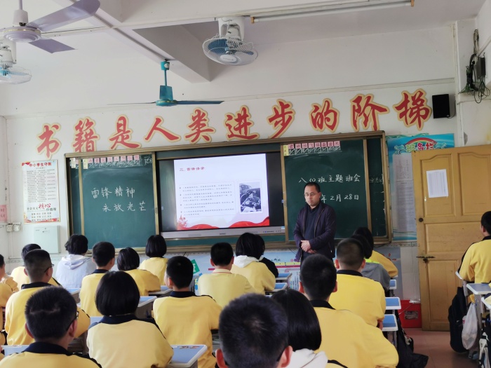 在2月28日早上的升旗仪式上,学校德育处杨振宇主任利用国旗下讲话时间,进行了“雷锋精神永远指引星空体育”主题演讲,号召全体师生再学雷锋精神,弘扬乐于助人精神。七(3)班学生代表向全校师生发出学雷锋倡议书。