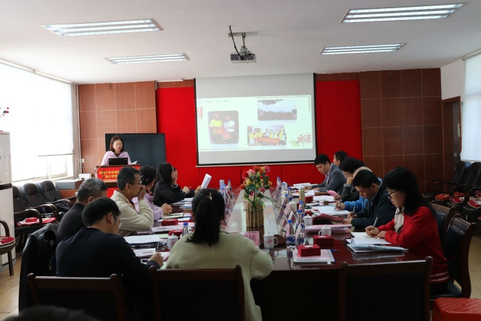 评估组首先听取了苏雪霞校长题为《 和力教育——“绳文化”引领下的学校文化建设构建》的自评报告。苏校长从和力德育、和力中队、和力课堂、和力教师、和力学子、和力家长等方面汇报了2020学年的主要工作和成效。