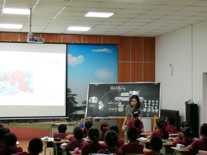 本次同课异构的主题是开心学英语四年级上册Unit4 My Day 的故事部分,由广福小学的刘美丽老师和竹秀园小学的杨意萱老师进行授课。两位老师深钻教材,精心设计教学环节,使同一节课呈现出异彩纷呈的画面。