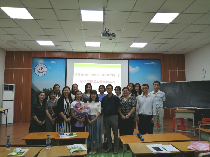 为进一步扩大学科间、校际间的教学交流,通过名师引领,不断充实和提高青年优秀教师的教育理论水平和教育科研能力,2020年10月13日下午,板芙镇广福小学与南区竹秀园小学联合开展英语同课异构暨拜师活动。参加本次活动的有板芙镇教师发展中心孙军辉、小学英语学科带头人蓝韶英,板芙镇各兄弟学校四年级英语教师。