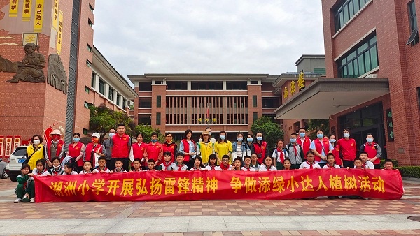 3月11日下午,板芙镇湖洲小学以一年一度的植树节为契机,邀请家长义工代表们和师生代表们来到校外农业基地植树点(尚美居北面花木场),开展“弘扬雷锋精神,争做添绿小达人”植树活动,在加强绿化宣传的同时,强化学生的动手能力。