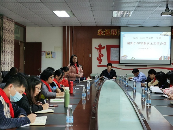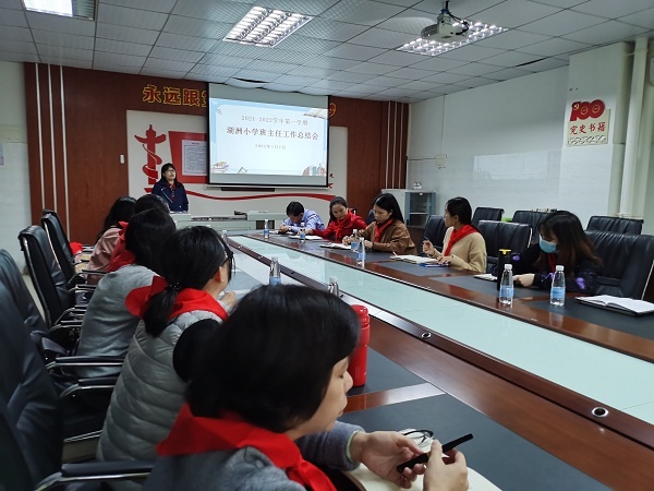 为了提升班主任班级管理水平,更好地推动学校各项工作的开展, 2022年1月7日下午,湖州小学召开了2021-2022学年秋季学期班主任总结会,德育副校长陈景新、德育主任陈雪颜、后勤主任胡伟、德育副主任范丹丹、大队辅导员以及全体班主任出席了本次会议。本次会议由范丹丹主持。