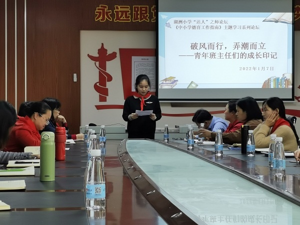 会议由五个环节组成。首先,胡伟对即将到来的寒假安全工作作细致部署,包括:寒假前班级防控应急演练、寒假学生心理问题排查统计、智立方健康申报、寒假疫情防控注意事项的宣传和信息统计等。紧接着,”破风而行,弄潮而行——青年班主任们的成长印记”专题论坛开始了。青年教师段佳婷、钟赞颖、吴卓良分享了自己作为一名新班主任,在班级管理工作中的困难与收获,说出了班主任工作的不容易和无私育人的教育情怀。接着,陈盈颖总结了本学期少先队工作中的问题,并提出了改进策略。陈雪颜随后对寒假线上家长会作出了详细部署。最后,陈景新对本次班主任工作会议进行总结,对班主任们提出了“小事要清楚,大事不含糊;宣传关怀到位,育人工作用心”的工作指导。