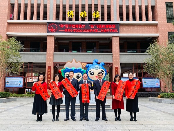 福兔送春归,美好随春至!中山市板芙镇湖洲小学迎来充满希望的新学期。2月6日早上7:15,大环街、中心街两个校区的行政和教师统一行动,身穿带有红色元素的服装,精神抖擞地准时回到学校,全体行政在校门口迎接学生回校。