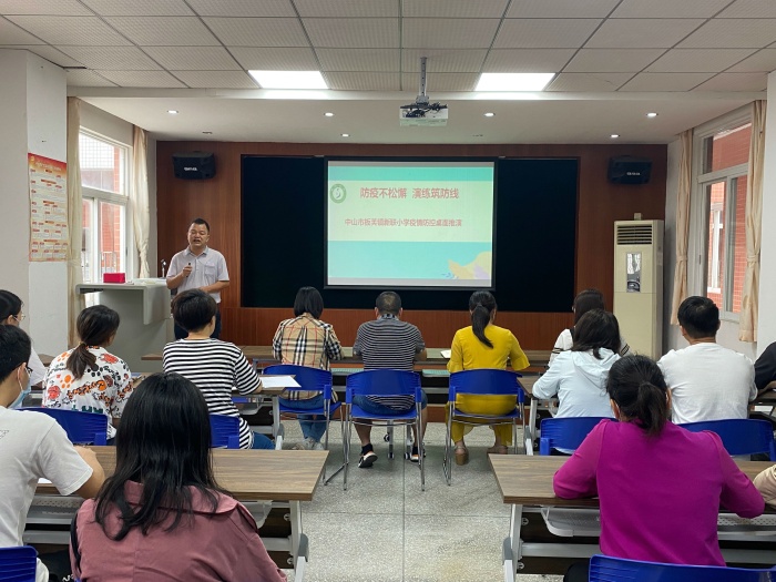 为统筹做好疫情应对工作,切实加强学校疫情防控工作,保障全体师生生命安全和身体健康,按照“外防输入、内防反弹”的原则,5月18日下午,新联小学组织开展新冠肺炎疫情综合处置桌面推演。活动由朱明媚老师主持,全体教师积极参与推演活动。