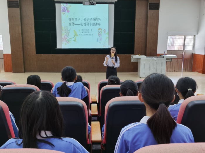 为增强未成年人防范性侵害意识,普及预防性侵害知识,帮助未成年人预防和远离性侵害,5月19日下午,新联小学开展法治教育进校园活动。广东刘志均律师事务所的律师杨瑞颖给六年级的学生进行了题为“拥抱自己,爱护好自己的身体”的预防性侵专题讲座。活动由学校德育处副主任刘桂英主持。