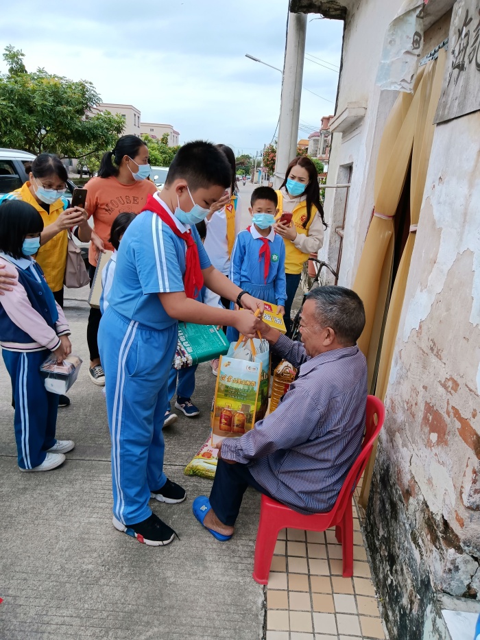 10月17日,新联小学组织学生开展新时代文明实践站重阳节慰问活动。活动中,义工家长和少先队员们深入村、社区,走访老人。孩子们与老人们面对面、手牵手交流谈心,帮老人们打扫卫生,让老人家感受到天伦之乐和家的温暖。除此之外,义工家长还给老人们准备了食用油,大米等生活用品,参与活动的家庭也精心准备了实用的小礼物送给老人家。