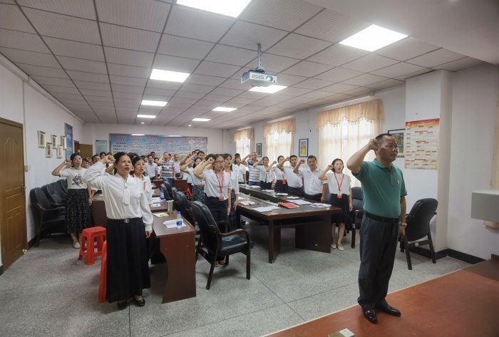 经过认真学习,结合文件精神反思自身思想,全体教职工郑重签署师德承诺书,今后将依法从教、廉洁从教,爱岗敬业。然后,全体教职工在郑少君的带领下重温《教师入职誓词》。全体老师高举右臂,郑重宣誓:“我志愿做一名人民教师,全面贯彻党的教育方针,落实立德树人根本任务……”
