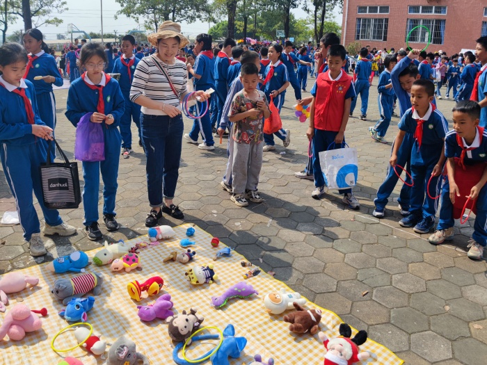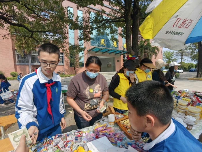 活动现场,义卖品种类丰富,有书籍、文具、书画作品和玩具等,琳琅满目的义卖品吸引了众多孩子们的目光。为了招揽“顾客”,每个班级都使出“浑身解数”,设计了独具特色的招牌和摊位。校园里人声鼎沸,各式叫卖声此起彼伏。有的充当了“促销员”,有模有样,卖力宣传;有的充当“服务员”,收钱找钱,忙得不亦乐乎;还有的化身“秩序员”,整理摊位,组织购买……清脆的叫卖声,为的是卖出自己心爱的物品,为需要帮助的人筹集善款,奉献自己的爱心。