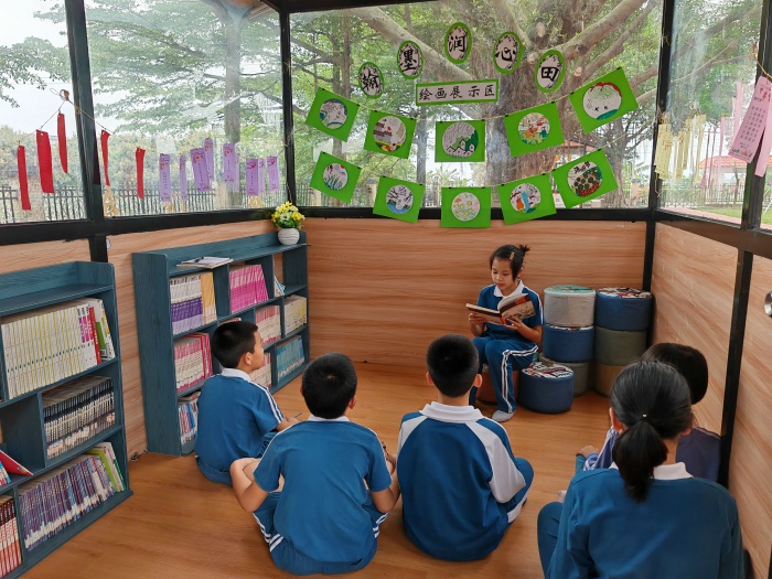 除此之外,新联小学以读书节为契机,组织各班学生到毓华园品读经典。瞧,微微蹙起的眉头、严肃认真的面容、平静愉悦的神态……这些都是同学们沉浸书海时的最美模样。