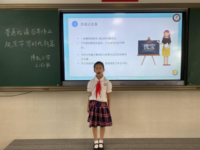 2021年9月13日至19日是第24届全国推广普通话宣传周,中山火炬高技术产业开发区博凯小学大力宣传,广泛发动,以“普通话诵百年伟业,规范字写时代新篇”为主题,开展了形式丰富的普通话推广宣传活动。