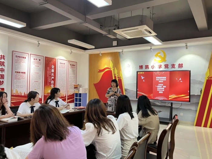 为深入学习贯彻习近平总书记在十九届中央纪委六次全会上的重要讲话精神,贯彻落实省第十三次党代会及市第十五次党代会精神,坚持不懈把全面从严治党向纵深推进,根据中共中山市委办公室印发的《2022年全市开展纪律教育学习月活动的意见》精神及《2022年火炬开发区纪律教育学习月活动方案》指引,2022年9月28日,博凯小学党支部组织全体党员开展纪律教育学习月专题学习活动。
