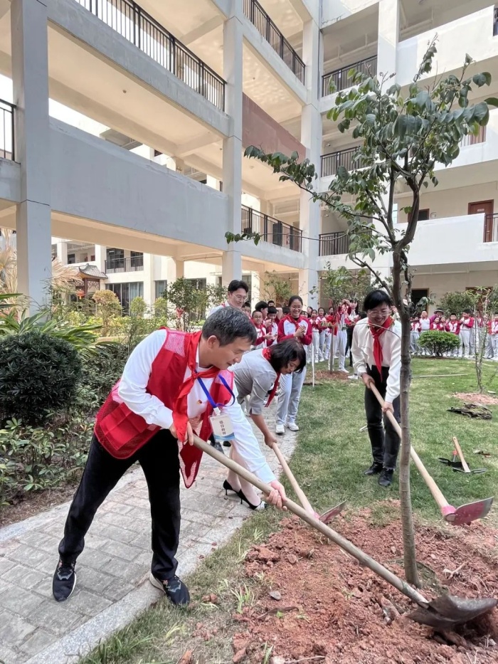 胡校长希望每一名同学都能树立“爱绿护绿”意识,珍爱校园中的花草树木,养成爱护自然、保护自然的良好习惯。大家积极行动起来,争做护绿使者。胡校长寄语教师们要不忘初心,厚植育人沃土,呵护“小树苗”长成参天大树;少先队员们要做新时代“学雷锋”好少年,握紧“接力棒”,听党话、跟党走,向下扎根、向上生长。