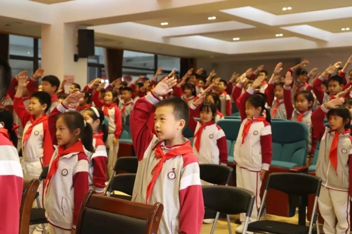 大会为新一任大队委颁发了大队委袖章,为各中队校外辅导员代表颁发了聘书。一个袖章是一份责任,袖章挂上左肩的那一刻,大队委肩负的是学校少先队工作的使命,期待大队委在少先队大队部的平台上快速成长,成为学校的小主人和管理者,服务同学,为校争光!一张聘书是一份由衷的感谢,感谢校外辅导员对学校少先队工作的支持和帮助。