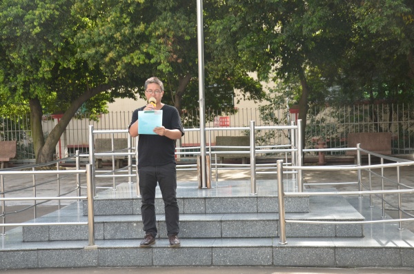 首先,大涌南文小学利用升旗仪式的时间,由大队辅导员王利勇老师向全校师生发起倡议:抵制毒品,人人有责。接着,王老师带领全校师生进行禁毒宣誓。每位同学在国旗下庄严宣誓,必会自觉抵制毒品,做到不吸毒,不贩毒。