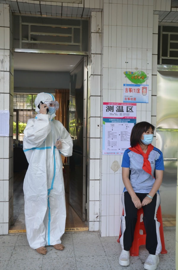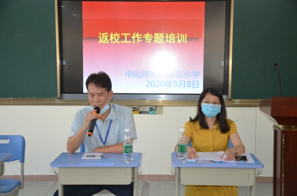 5月9日,大涌南文小学的全体教师齐聚电教室开展一系列开学准备工作。本次活动一共有四个议程。首先,大涌南文小学的教师按照原定开学演练计划分为几组,老师扮演的学生、值日教师、校医、班主任、行政纷纷就位,严肃认真仔细按照流程开展开学演练。演练一共分校门口发现体温异常学生、教室上课时发现体温异常且身体不适学生、健康观察室里对身体不适学生的处理等三个镜头。全体教师在演练过程中了解了突发事件的处理流程和方法,相信在未来面对可能发生的学生身体不适情况,也能反应迅速、从容不迫。